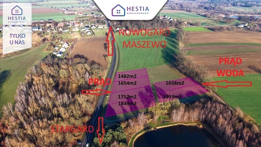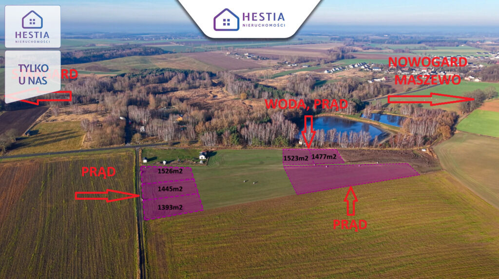 * 1482 m2, 1654m2, 1752m2, 1849 m2 z doprowadzonym PRĄDEM. Cena 75
